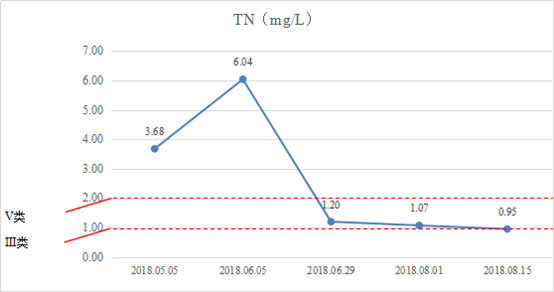 总结分析:该治理区域采用光催化技术,在短时间内迅速提升水质。经过3个月的治理之后,根据第三方数据显示,期间6月5日指标有所变差,原因为进入雨季,暴雨之后雨水携带污染物径流至治理区域,出雨季后,指标稳步好转。治理区域围隔内透明度及观感明显好于治理区围隔外。长兴湖治理区域现已达到要求的IV类水标准,治理效果显著。EVk新型光催化网_水库治理_河道治理_水生态修复_水环境治理与修复_江苏双良环境科技有限公司