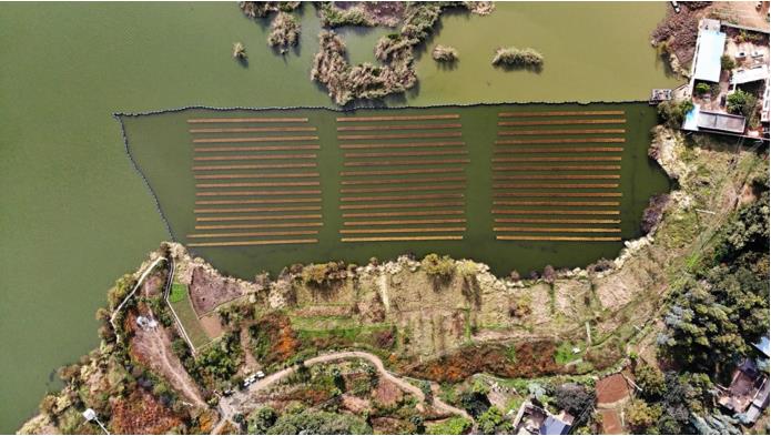 项目概述:洱源西湖作为拥有水域面积319.2公顷,常年蓄水位1967米,蓄水量593万立方米的高原平坝淡水湖泊,洱源西湖不仅为洱海提供大量的水资源,还在洱海?;ぶ卫碇蟹⒒幼胖匾饔?。然而原本水质很好的西湖,由于流域旅游业井喷式发展、右所镇污水处理设备不完善导致部分生活污水进入湖区、周边大力发展经济作物过度施药施肥、区域优级补水下降等原因导致水质逐渐恶化。西湖水质经过多年污染以及多次爆发蓝藻水华,已经破坏了其水生态系统,自身无法进行自组织修复,虽然阻断外源污染的工作十分重要,但是治标不治本,效果还是不尽人意。