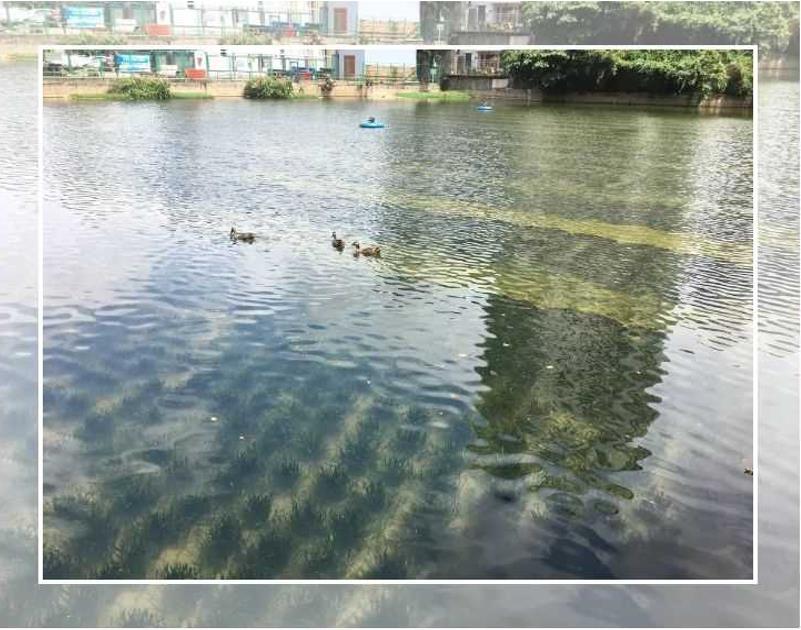 辛养鱼塘告别昔日“黑水塘”形象,沿岸的水生植物与清澈见底的池水交相辉映,互相点缀,相映成趣,已成为城市街道新的风景线和居民休闲散步的好去处。lX2新型光催化网_水库治理_河道治理_水生态修复_水环境治理与修复_江苏双良环境科技有限公司